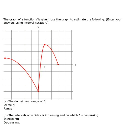 At the left end of each interval use with each end value to be included in the set solid dot or for each excluded end value open dot. The range is the set of possible output values which are shown on the y axis. Given a function in function notation form identify the domain and range using set notation interval notation or a verbal description as appropriate. The part in the center is defined on the interval x 0 and x 4.
